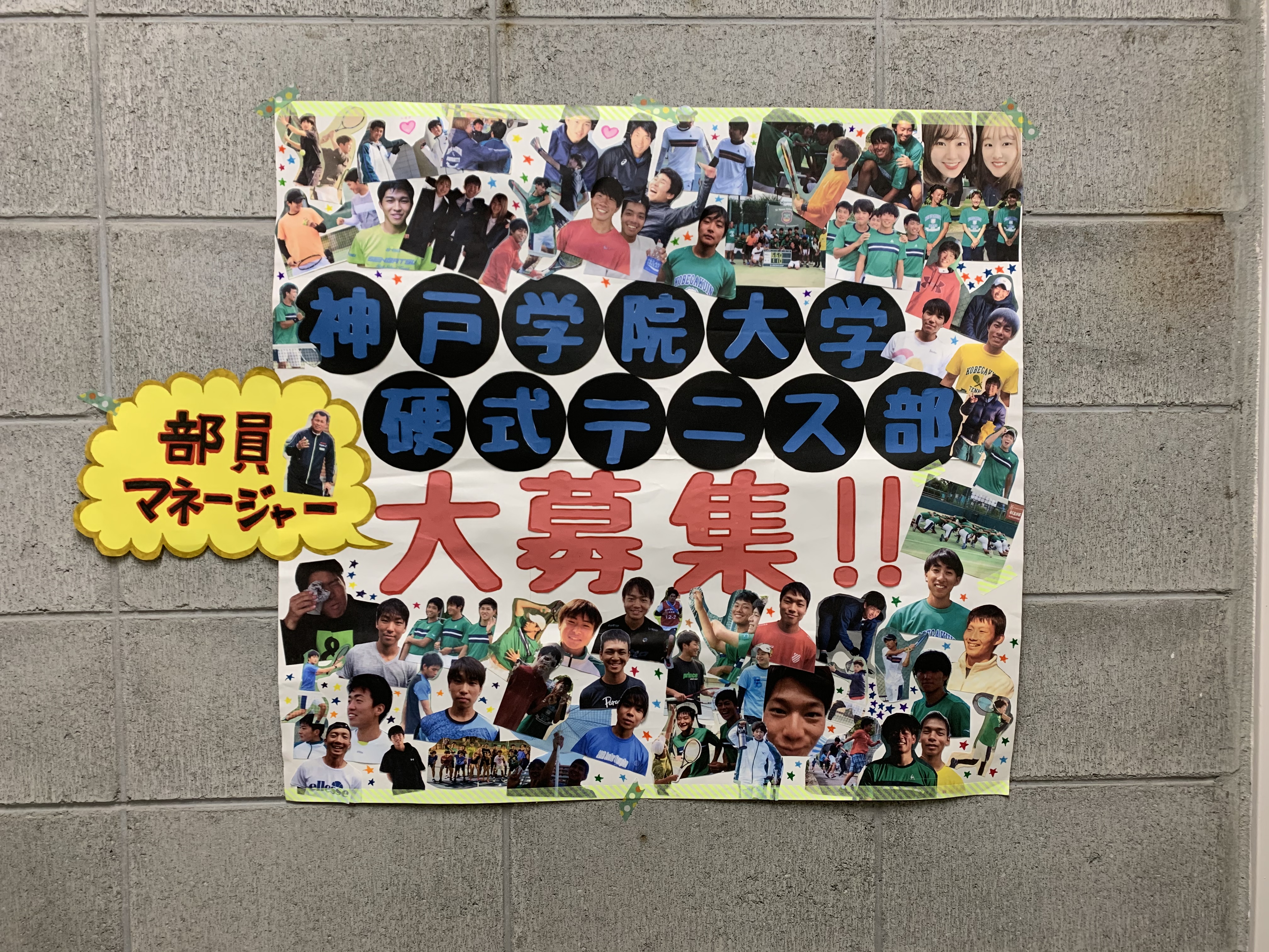 神戸学院大学有瀬キャンパスの15号館3Fにある掲示板のポスターを新しくしました。 前のポスターは前マネージャーさんが作ってくださっていたものです! 有瀬キャンパスに来る機会がございましたらぜひご覧下さい。